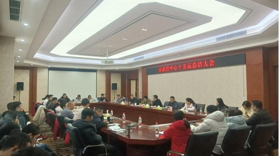 12月25日,市武管中心在市竞训中心四楼会议室召开十五运总结会议。市体育局二级巡视员张小军出席会议,竞体处、科教处、体科所相关人员,中心领导班子成员、全体工作人员、决赛参赛运动员及签约医疗服务单位代表参加会议。