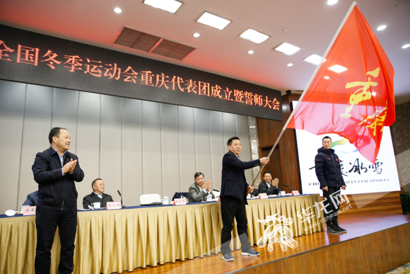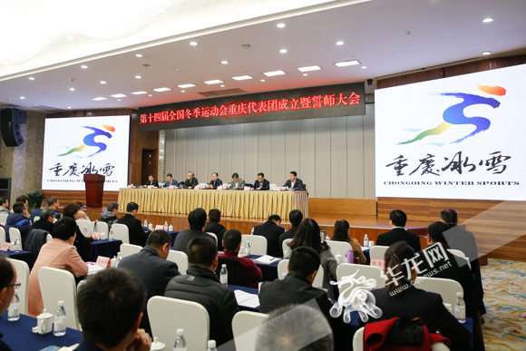 第十四届全国冬季运动会重庆代表团成立暨誓师大会,7日上午举行。华龙网-新重庆客户端记者 石涛 摄
