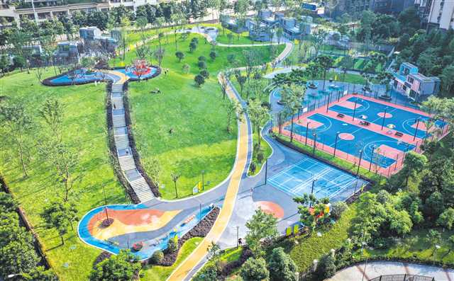 新建成的大渡口区心湖社区体育文化公园,为周边市民健身提供了场地保障