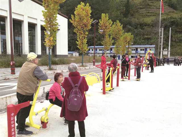 石柱县中益乡华溪村,村民在体彩公益金捐赠的健身器材上锻炼