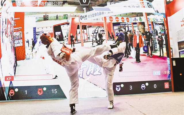 由重庆道吧体育研发的智能竞赛设备充满未来感,两位身着智能电子护具的空手道运动员示范了智能电子护具的“玩法”:运动员进行对抗,在这过程中的速度、力量等数据则被设备记录下来,并实时反馈到大屏幕上,观众可以通过数据直观生动地欣赏格斗竞技的魅力。“这套设备采用世界领先的固体力学和人工智能技术,是国内首创智能电子护具。”该公司负责人介绍,该设备还可增设游戏功能,教练还可通过设备及时了解选手的竞技状况。