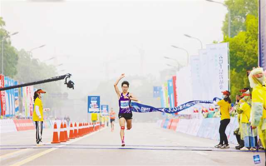 图为陈瑞璇率先冲线获得半程马拉松男子组冠军。通讯员 毕马 摄/视觉重庆