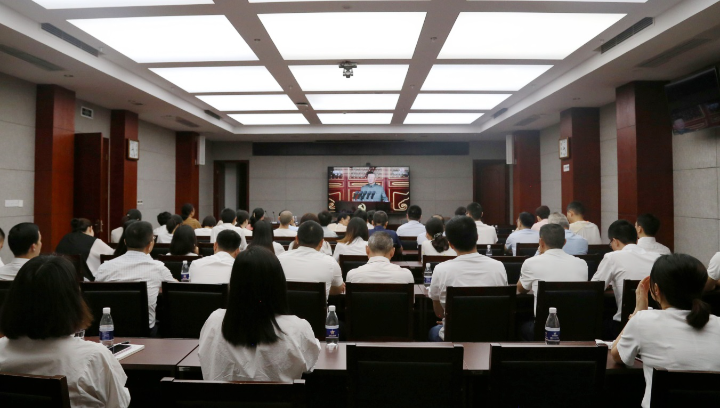 蘑菇视频 机关全体党员干部及职工集中收听收看大会直播。蘑菇视频 供图 华龙网发