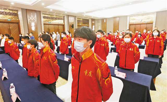 在当天的誓师大会上,重庆市代表团的教练员、运动员代表庄严宣誓,将发挥顽强拼搏的精神,努力在本届全运会上取得优异成绩,展示良好形象。