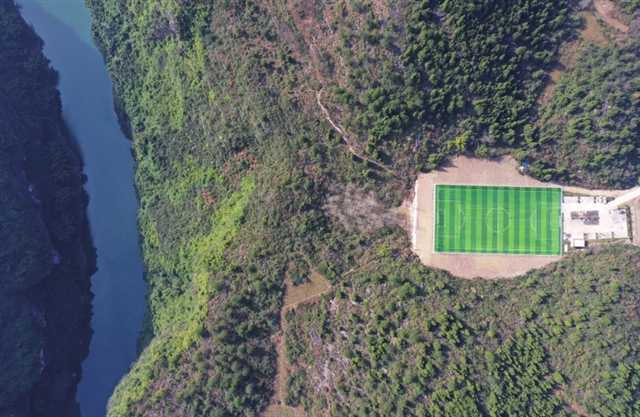 5 组图 峡谷村庄有了足球场 杨敏