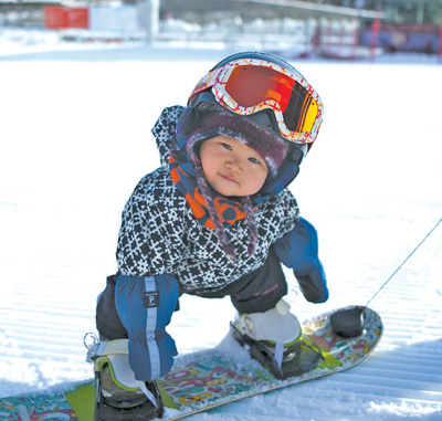 11月18日,在河北崇礼,小朋友在滑雪场学习滑雪。