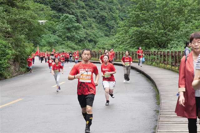 来自北京的游客张晓霞累得满脸通红,仍不断给身边的女儿和父亲加油打气。张晓霞说:“我们就是抱着旅游、观光和健身的心态来的,看惯了北京的高楼大厦,这里的峡谷山泉、飞瀑繁花、千仞绝壁、古寺禅音……太让人震撼了。”