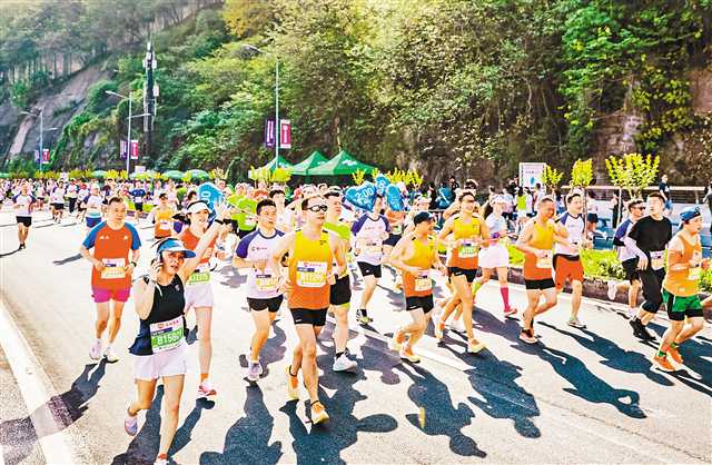 4月16日,2023重庆长嘉汇半程马拉松在南滨路鸣枪开跑,赛事设置半程(21.0975公里)、欢乐跑(7.1公里)两个项目,每个项目各1万人,吸引了全球11个国家、地区,海内外340个城市的2万名选手参赛。图为鸣枪后选手们冲出起跑线。