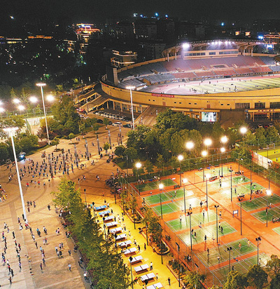 重庆市梁平区全民健身中心,市民在参加多种体育活动,强身健体,享受运动带来的快乐。