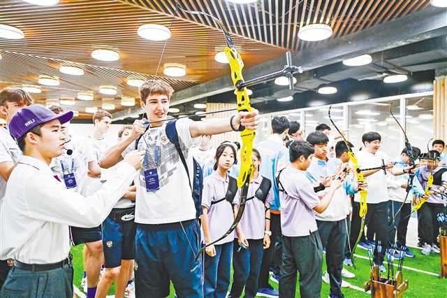人文活动中播撒友谊。运动会期间,运动员分成9支队伍,走进两江新区重光小学、重庆市南开两江中学等9所中小学,与同学们进行羽毛球、篮球、排球等体育项目的互动交流,感受重庆体教融合成果,体悟学校体育高质量发展。此外,运动员们还走进磁器口古镇等地,欣赏蕴含匠心与智慧的非遗项目,领略独具特色的巴渝文化。