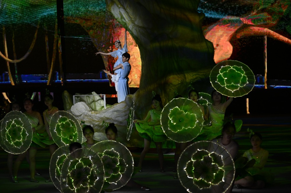 “开幕式仪式和文体展演立足重庆,着眼合川,无一不重庆,无一不特色。”宋飞说,文体展演中,绿色山川、三江汇涌,白鹭翱翔,既展现了重庆的壮美,又穿插表现李白“轻舟已过万重山”的气度、刘禹锡“东边日出西边雨,道是无晴却有晴”的弦歌。视频中,杜甫、李商隐、杨慎诗句铺展,浸润一方水土;陆游、周敦颐、陶行知、黄炎培先贤对话,名诗佳句交叠而出。整场展演,做到了扣主题、场景化、有意味、有故事、有特色、有内容,是为山城重庆专属定制。