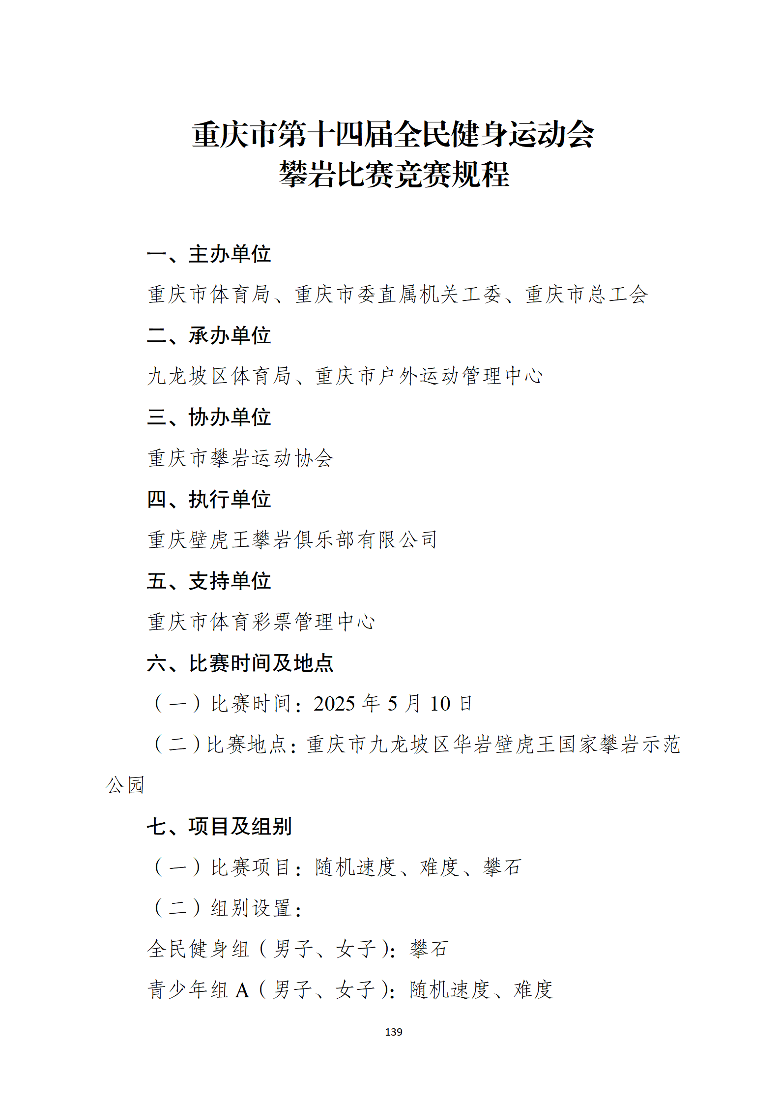 关于印发重庆市第十四届全民健身运动会竞赛规程的通知